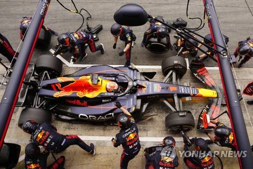 epa10672462 Dutch driver Max Verstappen of Red Bull Racing during a pit stop in the Formula 1 Grand Prix of Spain 2023 at the Circuit de Barcelona-Catalunya, in Barcelona, Spain, 04 June 2023. EPA/Enric Fontcuberta