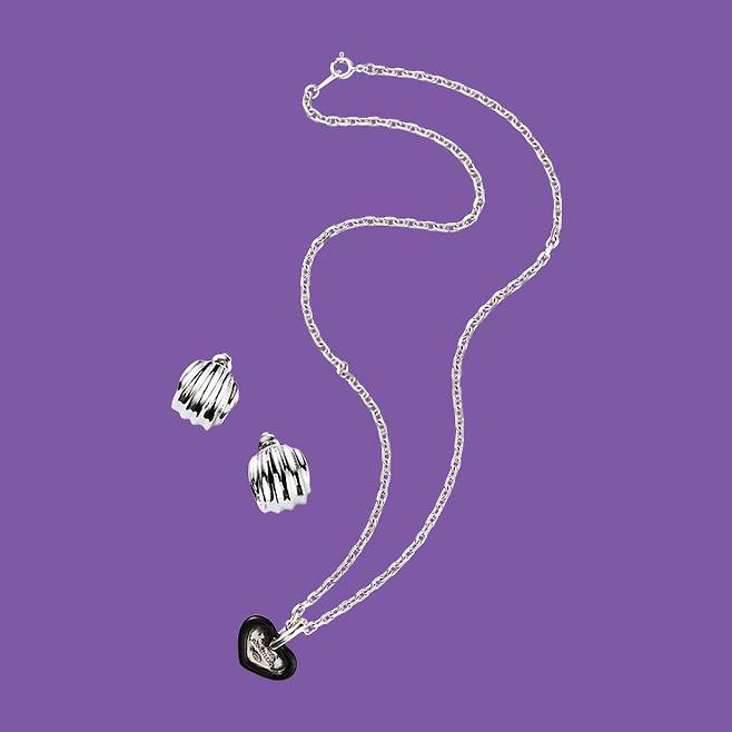 ▲ 1O64스튜디오 하트 펜던트 네크리스 ₩155,OOO, 실버 이어링₩13O,OOO