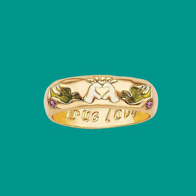 ✔ 초록&핑크 컬러 보석이 박혀 키치한 골드 컬러 실버링.