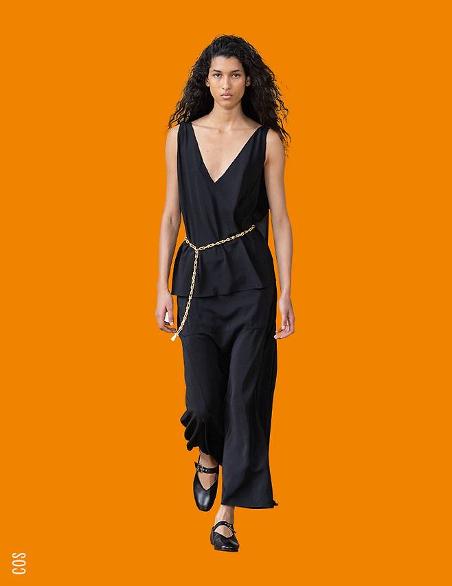 ▲ 코스 슬리브리스 플리티드 와이드 레그 점프수트 ₩15O,OOO