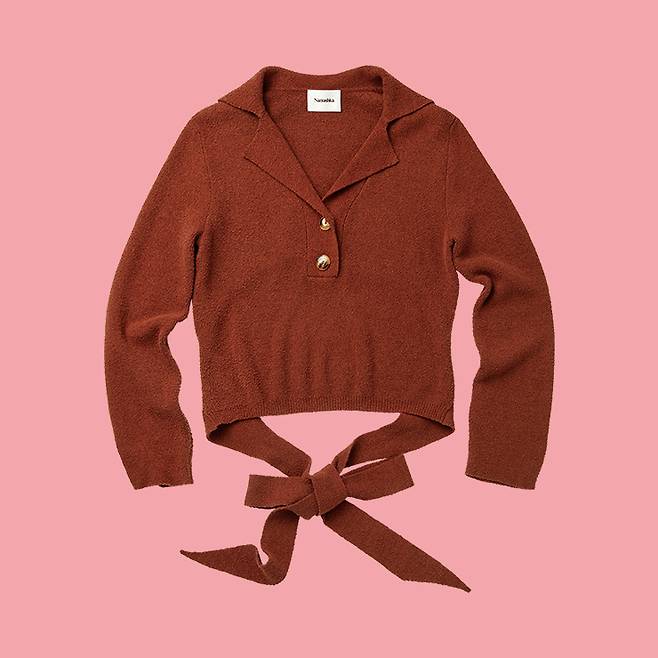 ▲ 나누시카 폴로 넥 스웨터 위드 타이 브라운 ₩765,OOO