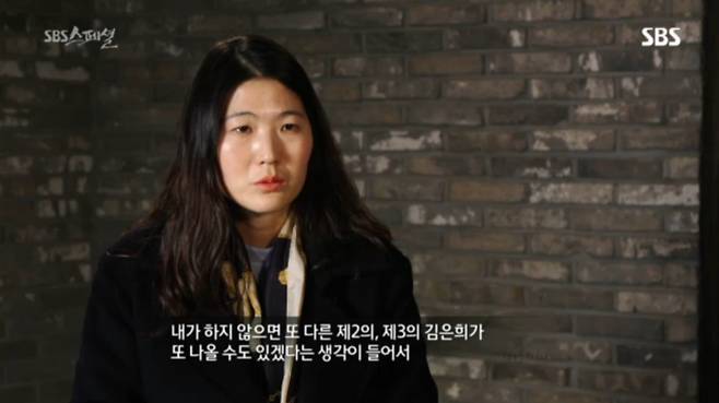 | ▲ 지난 2018년 방송된 < SBS 스페셜>에서 김은희씨는 15년 만에 가해자를 법정에 세우며 "제2의 김은희가 나올 수도 있겠다"는 생각에 재판을 결심했다고 고백했다. |