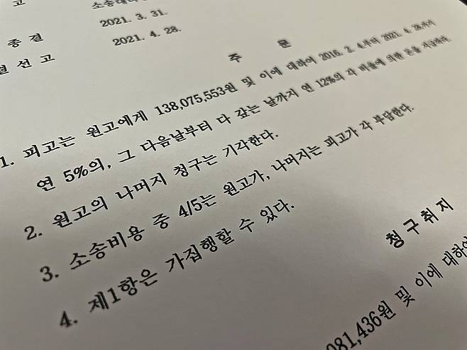 가해자에게 '1억 3807만 5553원' 손해배상액 지급하라 명한 재판부