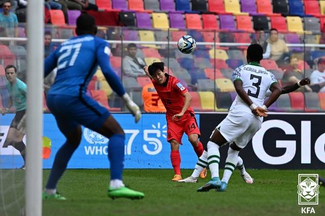 연장 전반, 코너킥이 찾아왔다. 한국은 온 정신을 집중했다. 에콰도르전과 같은 그림이었다. 이승원이 킥을 찼고 쇄도하던 센터백 최석현이 헤더로 상황을 마무리했다. 속도·각도·농도 등 모든 면에서 닮았던 득점 장면이었다.