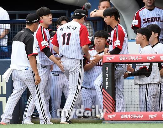 LG 관계자는 "함덕주는 팔꿈치 부위 불편으로 선수 보호차원에서 교체됐다. 현재 아이싱 치료 중이다"라고 설명했다.