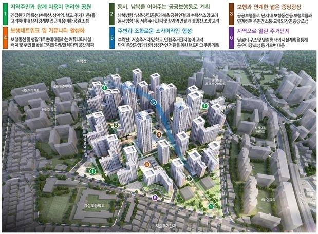또 향후 주변 아파트의 재건축과 상계역의 위상 변화 등에 대응할 수 있도록 용도지역을 제2종일반주거(7층)에서 제3종일반주거로 상향하고, 창의적 건축 디자인을 적용하면 높이 계획을 유연하게 적용하도록 했습니다.