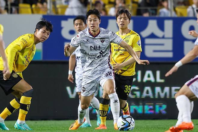말년병장들이 빠진 김천은 라인업에 변화가 있었다. 조영욱이 최전방 원톱으로 이동했고, 구본철은 측면 공격수로 배치됐다. 중원엔 김현욱이 김동현, 김진규와 호흡을 맞췄다. 원두재가 중앙 수비수로 출전한 가운데, 오른쪽 수비 위치에 김태현이 선발 복귀했다.