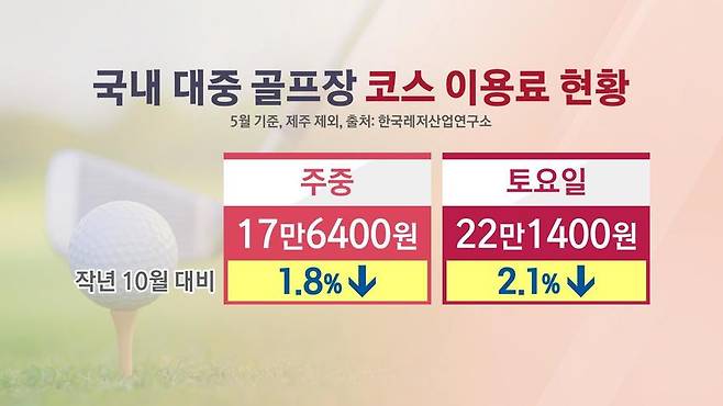 대중 골프장의 그린피는 지난달 기준 주중 17만 6천 원, 주말 22만 1천 원 선으로 나타났는데요.