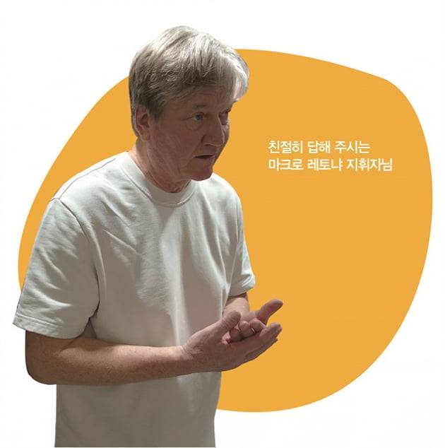 공연이 모두 끝난 뒤 마르코 레토냐 지휘자님과의 인터뷰가 이어졌다. 지휘자님은 힘든 공연 직후 땀으로 범벅이 된 가운데도 밝은 모습으로 기자단의 이야기에 귀 기울이며 성실히 답변해 주셨다. 많은 사람이 연주하는 다양한 악기 소리를 하나로 모으는 진정한 리더의 모습이 엿보였다.