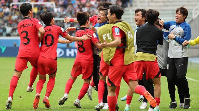 김은중 감독이 이끄는 대한민국 U-20 축구 대표팀은 이날 열린 나이지리아와의 8강전에서 연장 승부 끝에 1-0으로 승리를 가져오면서 4강행을 확정했습니다.