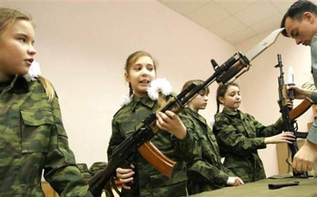 또, ‘중요한 대화’, ‘용감함의 교훈’, ‘우리 안의 영웅들’과 같은 보충 프로그램을 통해 학생들은 조국과 군인들의 위업을 찬양하는 시를 쓰도록 강제하고 있다. 뿐만 아니라, 과거 나치 독일과 싸울 당시에 했던 것처럼 군인들에게 보낼 양말을 뜨게 하고 있는데, 이런 내용의 애국 교육 과정은 각 학교의 필수과목으로 지정해 가르치고 있는 것으로 전해졌다.