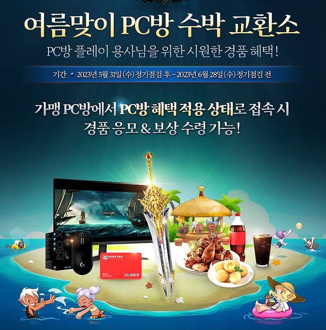 특히 어름맞이 이벤트인 'PC방 수박 교환소'는 5월31일부터 6월28일까지 '리니지' 가맹 PC방에서 접속 시 경품 응모와 보상 수령이 가능한데요. 다양한 인게임 아이템과 게이밍 모니터, 마우스, 상품권 등 푸짐한 실물 경품이 준비돼 있습니다.