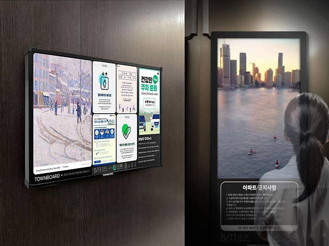 회사는 최근 아파트 로비의 출력물 게시판을 디지털 형태의 전자 게시판으로 개선한 ‘타운보드W’ 사업도 진행하고 있다.