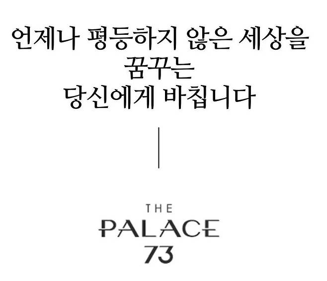 ['더팰리스73' 공식 홈페이지에 나온 홍보 문구. 6일 현재 삭제됐다. (자료=더팰리스73 홍보 누리집 갈무리)]