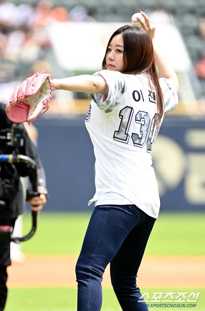 2023 KBO리그 한화 이글스와 두산 베어스의 경기가 6일 잠실야구장에서 열렸다. 경기 전 이진희 아나운서가 시구를 하고 있다. 잠실=허상욱 기자wook@sportschosun.com/2023.06.06/