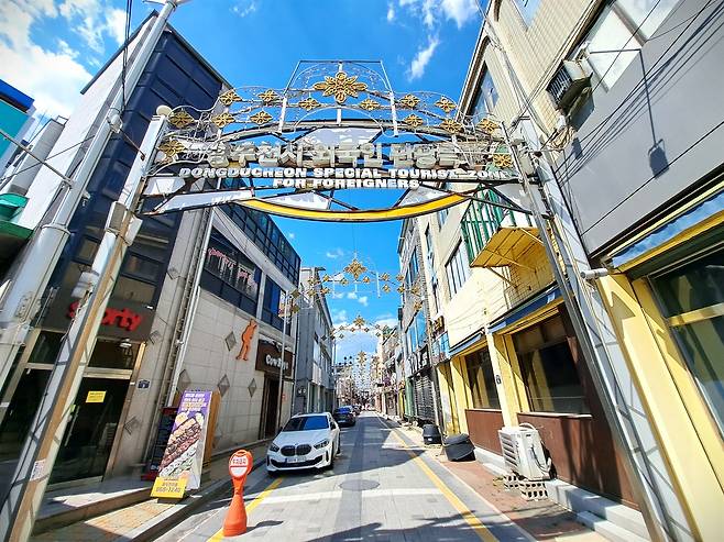 | ▲ 외국인관광특구 야간 조명등이 줄지어선 보산동 남측 초입 모습. |