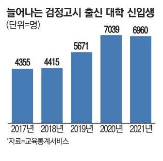 검정고시 출신 대학 신입생 수는 크게 늘어나는 추세다. 2017년 전체 34만2841명의 대학 신입생 중 검정고시 출신은 4355명으로 전체의 1.2%에 불과했다. 그러나 2021년에는 학령인구 감소로 전체 신입생 수가 32만9843명까지 줄었지만 검정고시 출신 신입생은 오히려 6960명으로 늘어 전체의 2.1%를 차지했다.