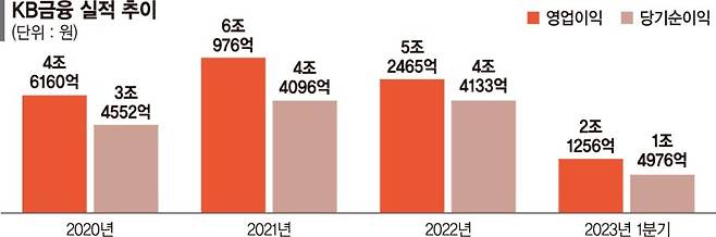 이 같은 주주친화 정책은 양호한 실적 덕분이다. KB금융그룹은 2017년 처음으로 3조원대 순이익을 달성, 리딩 금융그룹의 지위를 회복했다. 2022년 순이익은 4조4133억원으로 전년(4조4096억원)에 이어 2년 연속 4조원대를 달성했다. 올해 1·4분기에는 1조4976억원의 순이익을 냈다.
