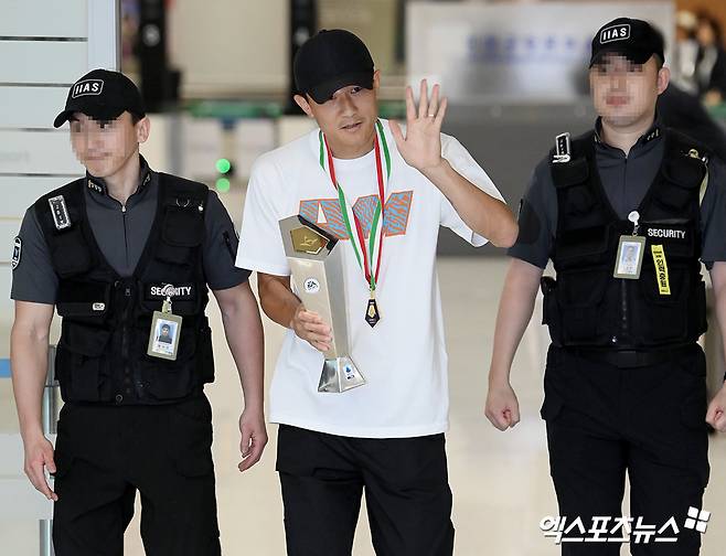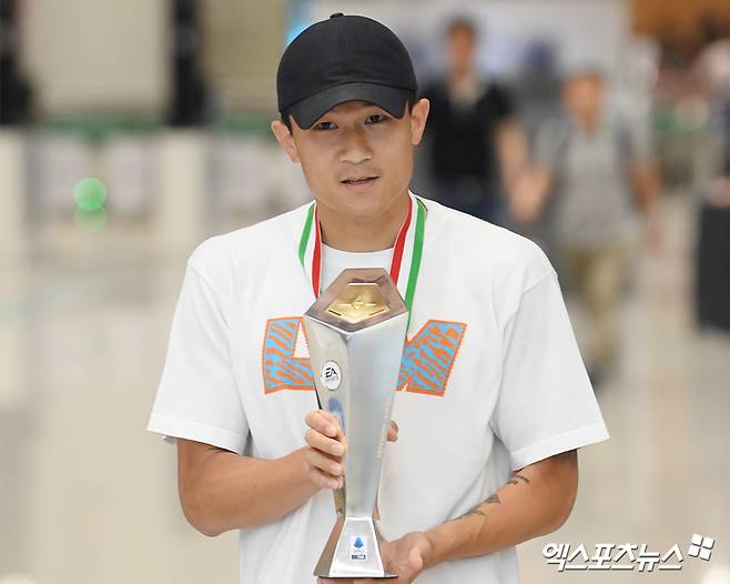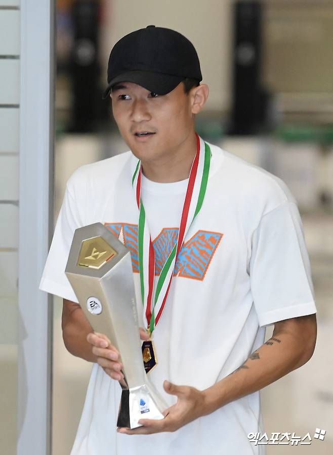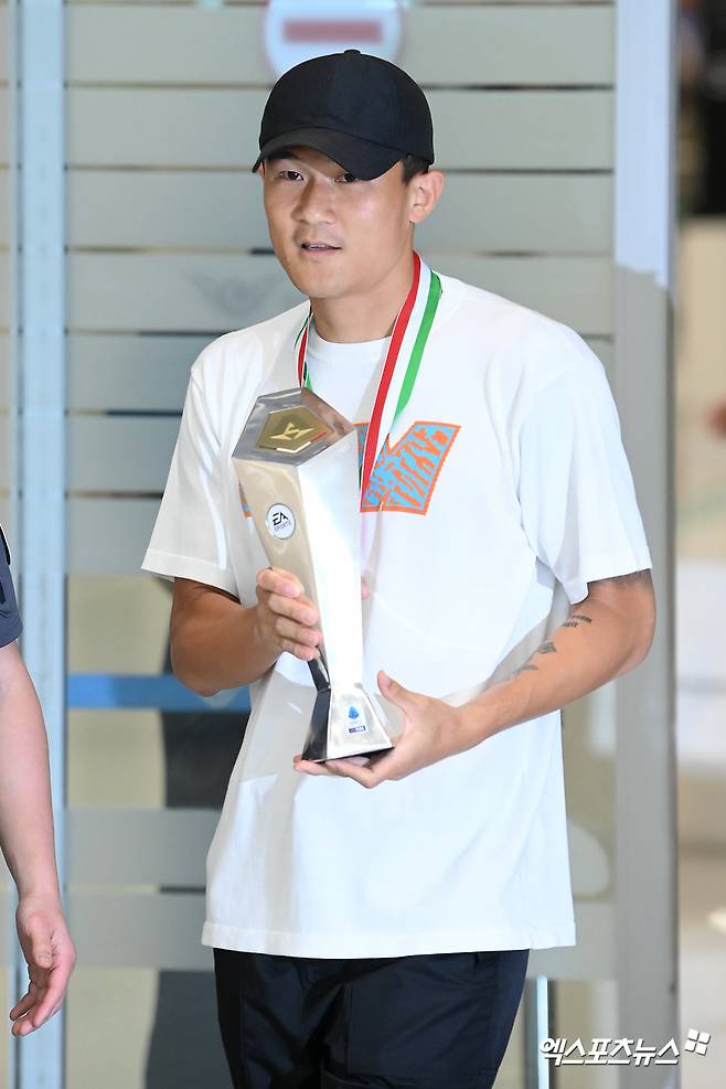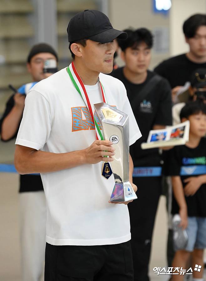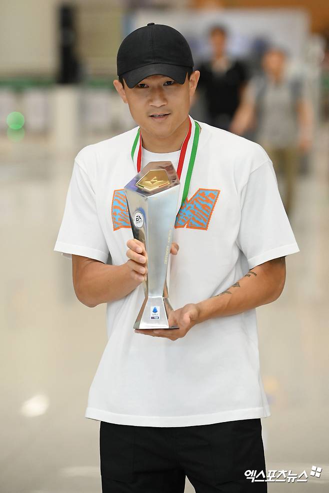 (엑스포츠뉴스 인천공항, 김정현 기자) 최우수 수비수 트로피와 우승 메달을 동시에 들고 온 김민재(나폴리)에 엄청난 환호가 쏟아졌다.