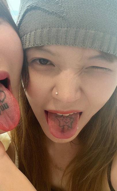식용 색종이를 이용해 혀에 타투 이미지를 연출한 지민.