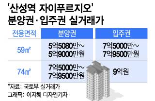 6일 일선 중개업소에 따르면 경기 성남시 수정구에 들어서는 '산성역 자이푸르지오' 분양권이 조합원 입주권과 비교해 2억원 가량 저렴한 가격에 거래되고 있어 다운거래 사례로 의심을 사고 있다.
