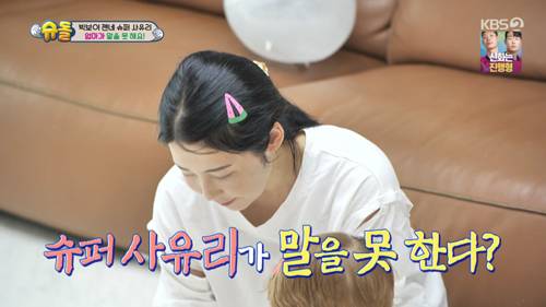 6일 오후 방송된 KBS2 '슈퍼맨이 돌아왔다'(이하 '슈돌')에서 사유리는 스케치북에 '제가 목 쓰면 안 돼서. 말 못해'라고 적었다.