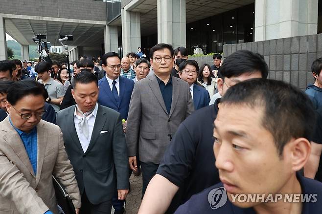 (서울=연합뉴스) 홍해인 기자 = 더불어민주당 '전당대회 돈 봉투 의혹'과 관련해 송영길 전 대표가 7일 서울 서초구 서울중앙지방검찰청에 자진 출석 뒤 면담이 이뤄지지 않자 되돌아가고 있다. 2023.6.7