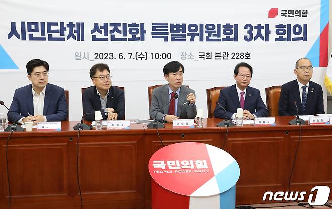(서울=뉴스1) 송원영 기자 = 하태경 국민의힘 시민단체 선진화 특위 위원장이 7일 오전 서울 여의도 국회에서 열린 시민단체 선진화 특위 제3차 회의에서 발언을 하고 있다. 2023.6.7/뉴스1