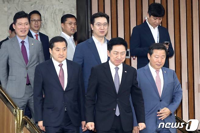 (서울=뉴스1) 황기선 기자 = 김기현 국민의힘 대표가 7일 오전 서울 여의도 국회에서 열린 임명장 수여식 및 확대당직자회의에 참석하고 있다. 2023.6.7/뉴스1