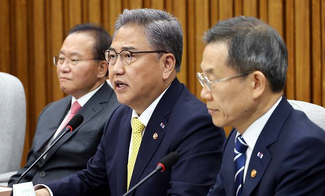 박진 외교부장관이 7일 오전 서울 여의도 국회에서 열린 우리바다 지키기 검증 TF 확대회의에서 발언을 하고 있다.