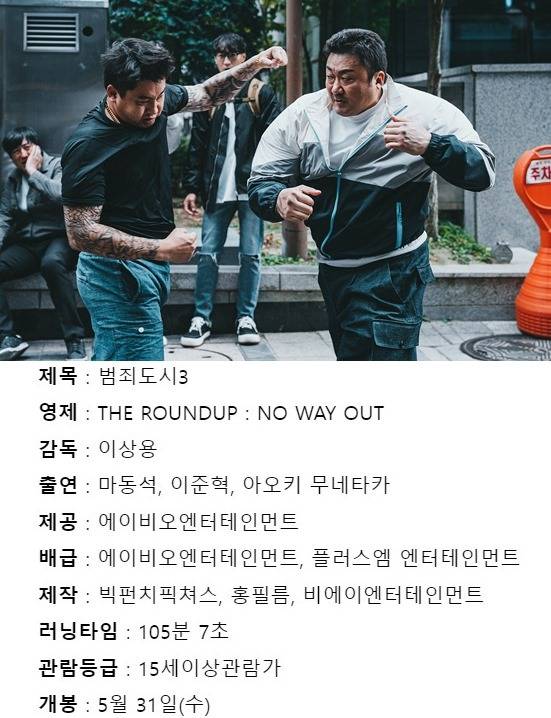 # 빵빵 터지는 유머. 의외로 타율 좋음. 1편 2편보다 유머 코드 강화해 부담 없이 가볍게 즐길 수 있음. ‘진실의 방’도 다시 등장. 마석도의 능청스러운 대사에 웃음이 빵빵~ 새로운 신스틸러들과의 케미도 차짐. 잔인한 장면도 있지만 전체적으로 전작보다 더 유쾌함.