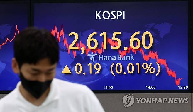 (서울=연합뉴스) 김인철 기자 = 7일 오후 서울 중구 하나은행 딜링룸 전광판에 코스피 지수 등이 표시되고 있다.