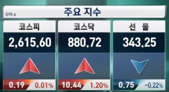 7일 코스피는 전거래일(5일)보다 0.19포인트(0.01%) 오른 2,615.60에, 코스닥은 10.44포인트(1.20%) 오른 880.72에 거래를 끝냈다.