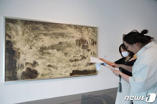 (안산=뉴스1) 김영운 기자 = 이건희컬렉션을 중심으로 한 한국근현대미술 특별전 ‘사계’의 전시 개최 하루 전인 7일 오후 경기 안산시 단원구 경기도미술관에서 관계자들이 막바지 전시 준비 작업을 마치고 전시장을 둘러보고 있다.