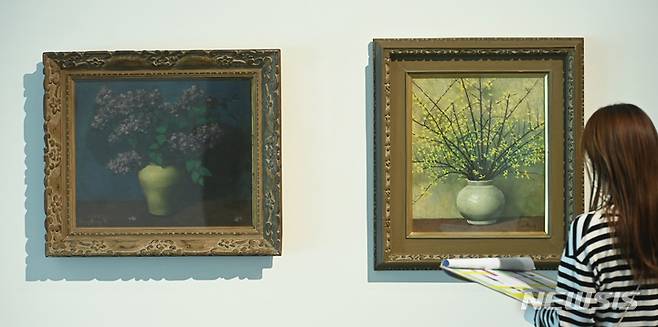 [안산=뉴시스] 김종택 기자 = 이건희컬렉션 한국 근현대미술 특별전 '사계'를 하루 앞둔 7일 경기도 안산시 경기도미술관에서 관계자가 전시된 작품을 살펴보고 있다. 이번 전시에서는 이건희컬렉션에 들어있는 작가의 대표작들을 살펴볼 수 있으며 국립현대미술관에 기증된 이건희컬렉션 46점을 중심으로 1927~2010년 작품 90점을 전시한다. 전시는 무료이며 오는 8일부터 8월20일까지 열린다. 2023.06.07. jtk@newsis.com