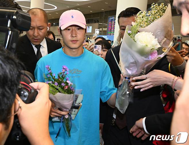 (인천공항=뉴스1) 김진환 기자 = 스페인 프리메라리가 마요르카의 미드필더 이강인이 7일 대표팀 합류를 위해 인천국제공항을 통해 입국하고 있다.