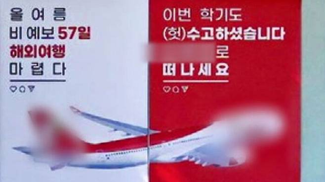 국내 한 항공사가 충북 청주와 대전 일부 대학교에 부착한 홍보 포스터입니다.