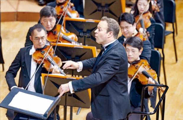 오후 5시. 지난해부터 국립심포니 예술감독을 맡아 온 다비트 라일란트(사진)가 여유로운 웃음을 지으며 오케스트라 뒤로 걸어 나왔다. 첫 작품은 예술의전당 위촉 창작곡인 이본의 ‘Cusco(쿠스코)? Cusco!’였다. 정반합(正反合)의 원리를 소재로 한 이 곡에서는 기존 선율과 그에 반대되는 선율, 기존 방향과 이를 거스르는 방향, 협화음과 이를 등지는 불협화음을 넘나들면서 ‘정(正)’에 도달하려는 음악적 움직임을 읽을 수 있었다.