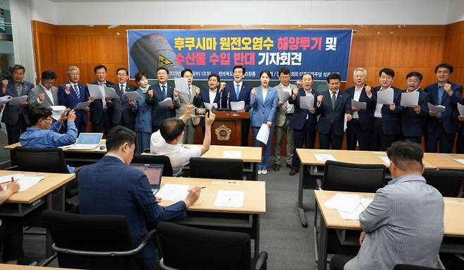 전라북도의회 더불어민주당 의원들이 후쿠시마 원전오염수 해양투기 및 수산물 수입 반대를 외치고 나섰다.