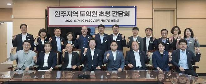 이날 간담회에는 김기홍 강원도의회 부의장을 비롯한 7명의 지역 도의원, 원강수 원주시장을 비롯한 부시장, 국장급 간부 공무원이 참석했다.