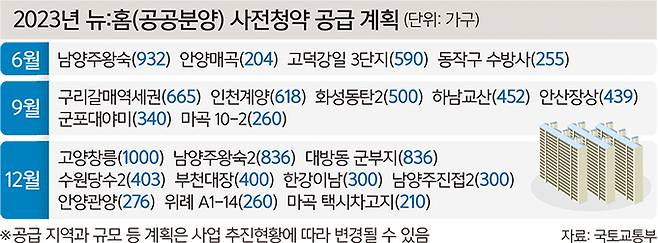 윤석열정부의 새로운 공공분양주택 브랜드 뉴:홈의 사전청약 물량이 올해 1만가구 풀릴 예정이다.