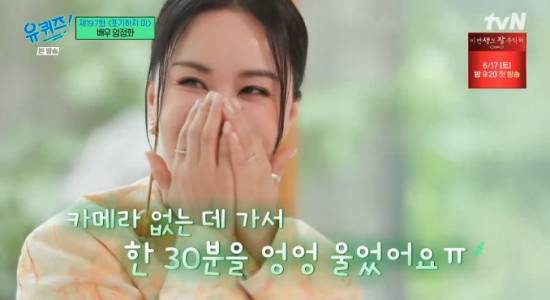 엄정화는 "엄정화의 성공적인 복귀라든지 완벽한 차정숙 이렇게 나오니까. 녹화를 못 하겠더라. 감정이 막 올라왔다. '잠시만요' 하고 카메라 없는 데서 30분을 엉엉 울었다"라며 귀띔했다.