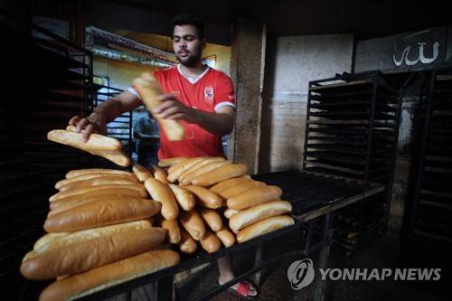 epa10677770 A man bakes bread at a bakery in Cairo, Egypt, 07 June 2023. Retail market has significantly slowed down due to the soaring inflation. EPA/KHALED ELFIQI