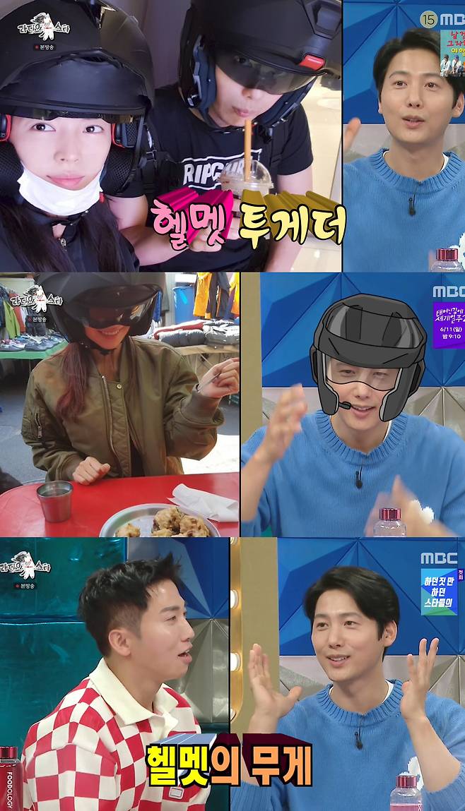 이상우는 아내 김소연과 함께 오토바이 데이트를 즐긴다고도 말했다. 그는 "우리 둘다 오토바이 면허가 있다. 너무 어린 나이에 데뷔해서 가본 곳도 별로 없고 친구도 별로 없는 아내를 위해 오토바이와 무전이 되는 헬맷을 사서 광장 시장도 돌고 곳곳을 다니며 데이트를 했다"며 "헬맷을 벗지 말자고 했다. 주변 사람들이 우리를 배달 라이더로 보더라. 아내가 무거워서 벗고 싶다고 할 때 '헬맷의 무게를 견뎌라'라고 말했다"고 해 엉뚱한 매력을 그대로 보여줬다.