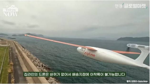 집라인의 드론은 바퀴가 없어서 배송지점에 이착륙이 불가능하다. 해발 30m 상공에서 배송품을 투하하고 돌아오는 방식이다. 이착륙을 반복하지 않는 덕분에 시속 100km로 반경 80km를 운항할 수 있다. 고토열도 전역을 배송할 수 있는 거리다.