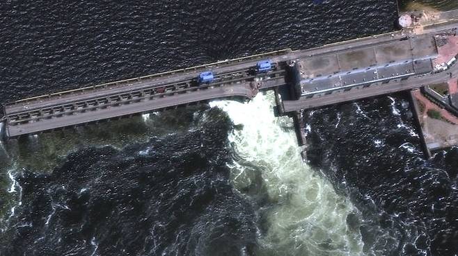 우크라이나 남부 헤르손주의 다목적댐인 카호우카 댐은 드니프로강의 수위를 안정적으로 조절하는 6개의 댐 가운데 가장 하류 쪽에 있습니다.