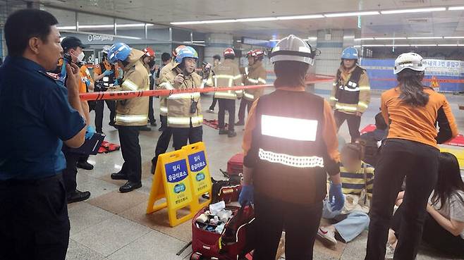 경기 성남시 분당구 지하철 분당선 수내역 2번 출구 상행 에스컬레이터가 역주행해 이용객 14명이 다쳤습니다.