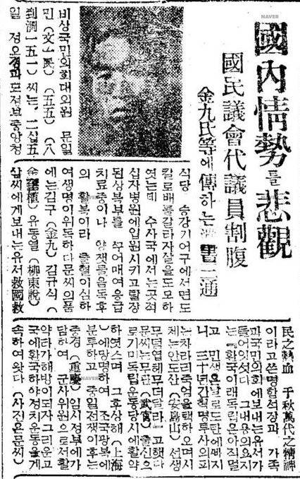 김 주석도 이런 꼴을 당하시거든 그외의 애국자야 더 말할 것 있으랴. 모든 혼란과 분열도 그들이 제조하는 것이다. 애국자가 존경을 받지 못하는 그 국가는 위기가 잠복하는 법이다.