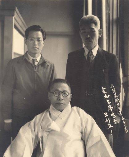 | ▲ 1948년 5월 10일 김구와 함께 한 문일민(오른쪽) |