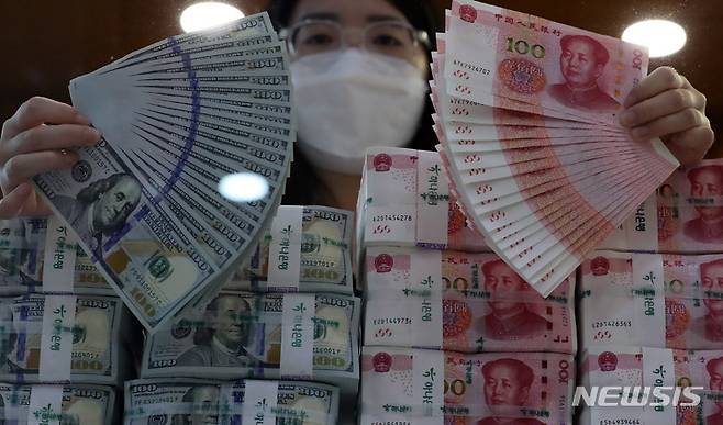 [서울=뉴시스]이재준 기자 = 중국인민은행은 8일 최근 내외 정세 동향, 미국 금리조정 관측, 경기회복과 금리차 등을 반영해 달러에 대한 위안화 기준치를 3거래일째 절하 고시했다.